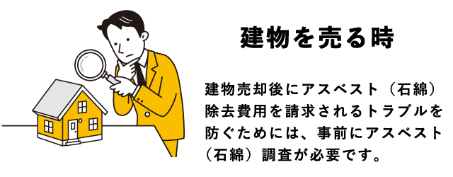 建物売却後にアスベスト(石綿)除去費用を請求されるトラブルを防ぐためには、事前にアスベスト(石綿)調査が必要です。