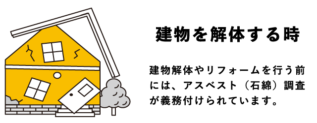 建物解体やリフォームを行う前には、アスベスト(石綿)調査が義務付けられています。